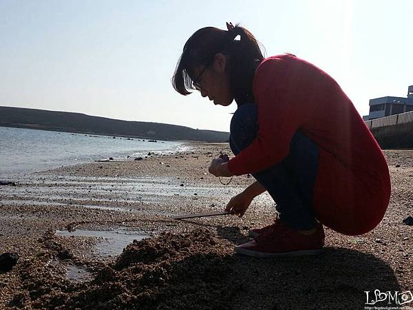 ↑皮蛋不是在做沙畫,是在沙灘上找蜆